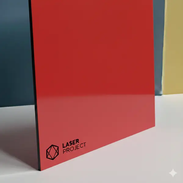 Plancha de acrílico bicapa de color rojo/ grabado color negro de 1.6 mm. de espesor para trabajos de rotulación, señalética, etiquetado, etc. disponible en varios formatos